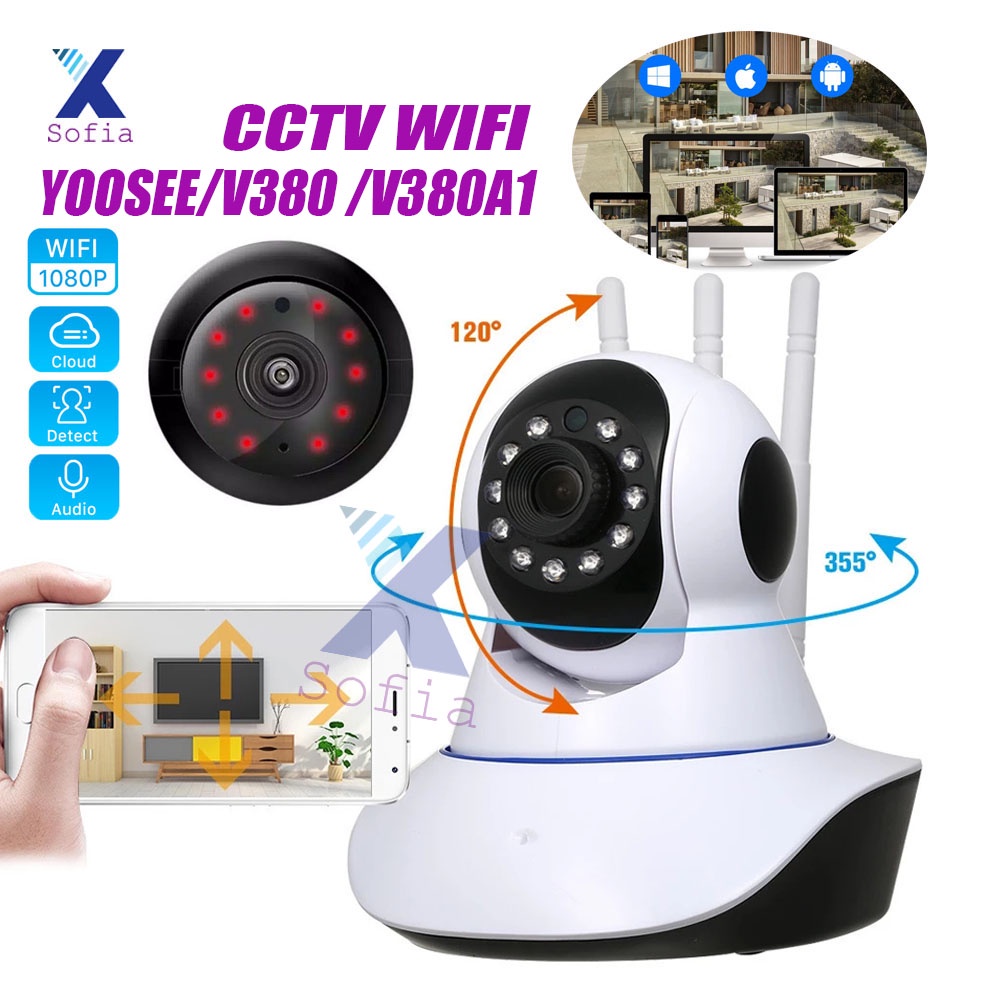 - Kamera cctv wifi ip camera wireless 3 antena v380 1080p outdoor indoor.